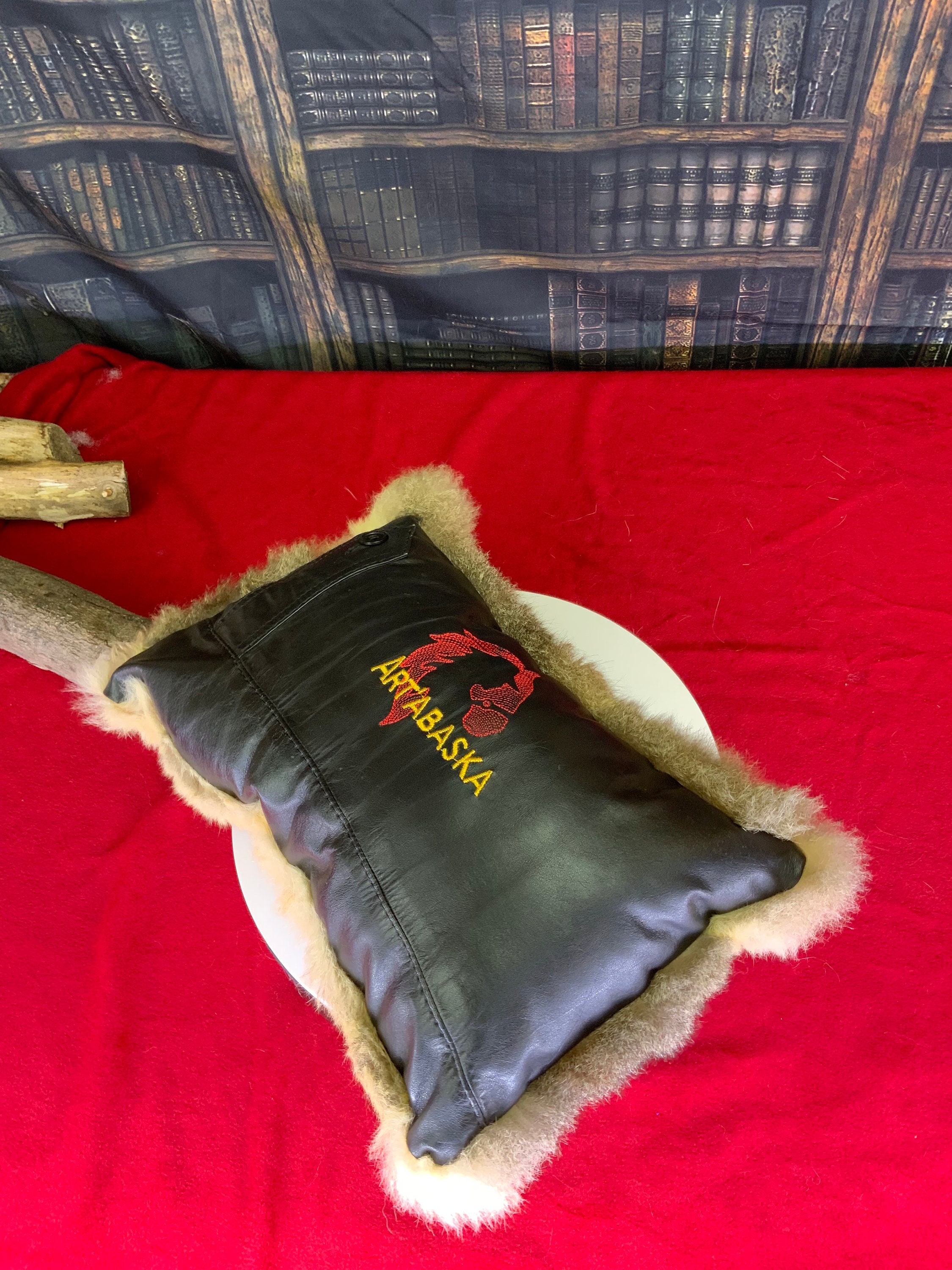 The back of the cushion is made from an old leather coat, with a personalized Art’Abaska embroidery that brings a unique and artistic touch. This contrast between the softness of the fur and the leather brings a sophisticated and distinctive look.